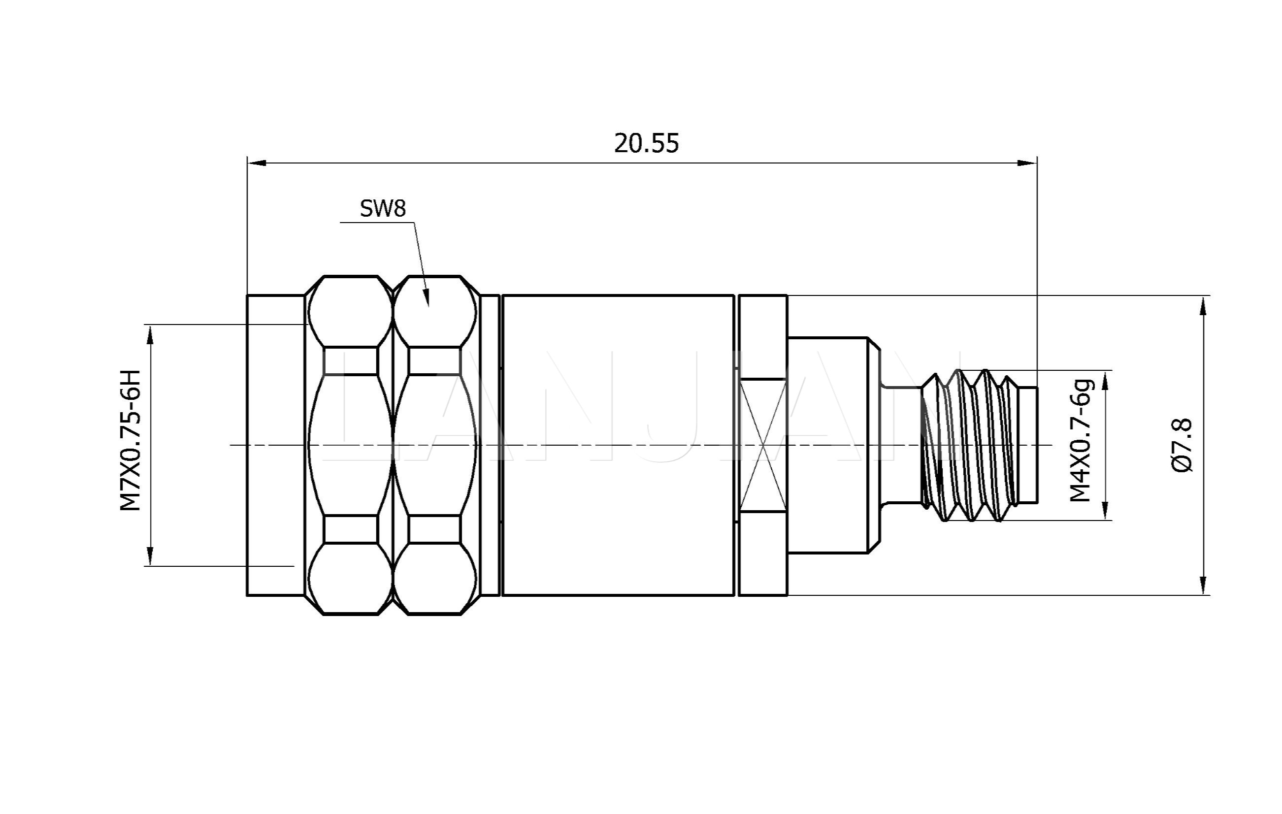 商品描述:1.0mm female to 1.85mm male straight adapter,65GHz