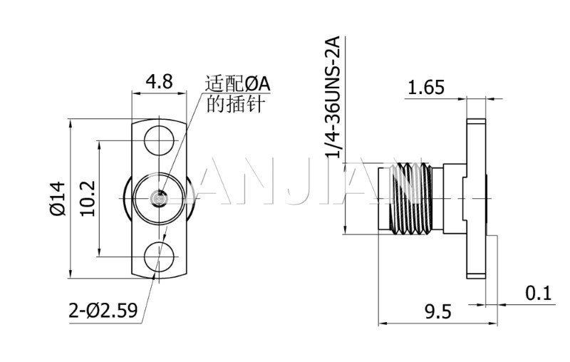 商品描述:2.92mm straight jack connector,40GHz